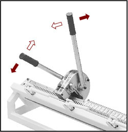 4、 左手上推左手柄,同時右手下拉右手柄,此時左手柄上移,右手柄處于鎖定狀態(tài),機頭移位、壓扣;左手柄到位后不動,右手柄下移至最低位,完成一個訂扣動作 。左、右手柄同時反向用力,右手柄先抬起至初始位后,左手柄將下移至初始位。重復(fù)以上操作,直到完成全長接頭的訂制。