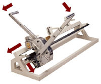 訂完一付接頭后,即把油泵換向閥打到空位,左手拉下移位棘爪,右手把機頭推回到機架的左端。